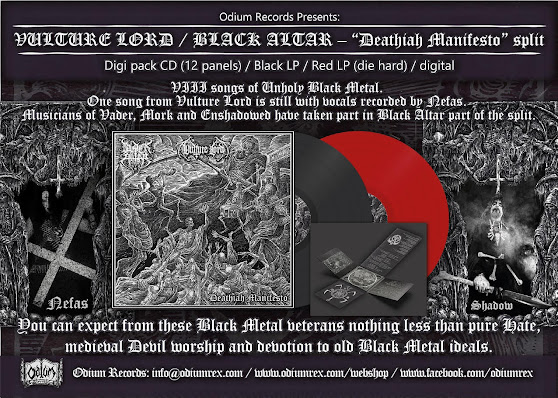 Η ODIUM RECORDS ανακοινώνει με περηφάνια την πρεμιέρα του split των Νορβηγών black/thrash masters VULTURE LORD με τους Πολωνούς BLACK ALTAR, με τίτλο “Deathiah Manifesto”.
