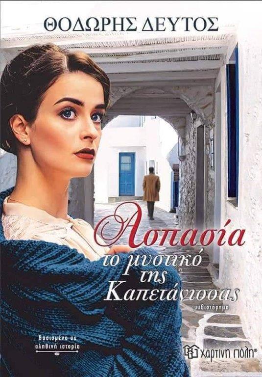 Ο συγγραφέας Θοδωρής Δεύτος για άλλη μια φορά μας εκπλήσσει θετικά με το τελευταίο του μυθιστόρημα «Ασπασία το μυστικό της Καπετάνισσας», βασισμένο σε αληθινή ιστορία όπως σημειώνεται και στο εντυπωσιακό, καλαίσθητο με ανάγλυφο τον τίτλο, εξώφυλλο ενώ στο οπισθόφυλλο, δίνεται μια σύντομη περίληψη της ιστορίας.